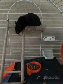 Come da foto bellissima coppia di criceti dorati molto affettuosi e pronti alla riproduzione. Non mordono e si possono tenere in mano. Maschio colore bianco e nero, Femmina tutta nera con zampine bianche. Con i criceti lascio gabbia con accessori, segatura, e 2kg di cibo. Ritiro al mio indirizzo zona Saronno. Solo interessati.