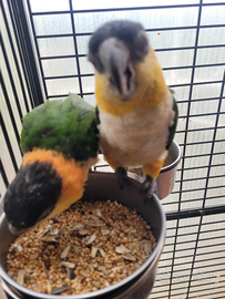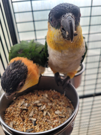 Coppia di caicco testa nera nati a luglio 2025,non consanguinei allevati a mano.