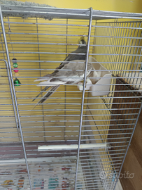 Cedo coppia di calopsite con gabbia e accessori,il maschio è quello scuro con faccia gialla, quando è tranquillo si lascia accarezzare ma non stringere tra le mani,sa fischiare canzoncine e dire qualche parola,la femmina è quella perlata (non allevata a mano) prezzo non trattabile perché già un affare