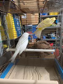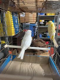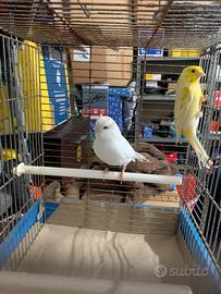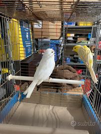 Vendo coppia di giovani canarini anellati foi 2025. Femmina bianca recessiva. Maschio Agata giallo limone. messi insieme in gabbia solo per le foto, pronti da accoppiare. Li vendo solo in coppia. Prezzo euro 50 non trattabile. Con 10 euro in più possibilità di acquistare anche la gabbia da cova "in foto". Se interessati chiamare il 3358358825