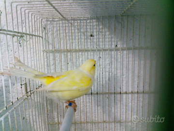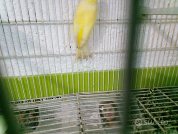 Cedo coppia di canarini di canarini gialli brinati pronti alla cova 30€ la coppia , cedo anche 4 canarini novelli due gialli e due pezzati nati a dicembre 2025, 40€