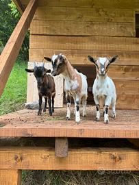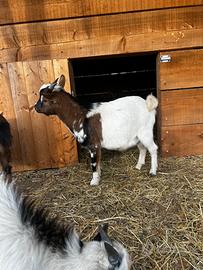 Vendo coppia di capre tibetane poco meno di un anno, molto docili e domestiche, il maschio è castrato. Non vendo separatamente. Prezzo 100€ l'una leggermente trattabile. In foto sono quelle bianche e marroni.