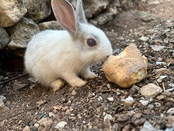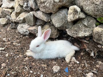 Vendo bellissimi coniglietti nani attualmente ne ho 2 già svezzati. 1 (credo maschio) completamente bianco occhi rosso/azzurro REW(red eye white) e 1 (credo femmina) bianco con macchie simmetriche grigio freddo chiaro e occhi blu/grigio intenso "blue-eyed white" (BEW) o Vienna carrier. Nati da 2 conigli nani. Canicattini bagni(SR) Per info e altre foto contattatemi!