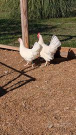 coppia di galline nane, maschio e femmina nati il 4 luglio 2025, allevati all'aperto in ottime condizioni igieniche e alimentati in modo naturale.