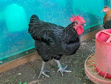 Vendo una coppia di galline nere a 30€. La gallina depone uova marroni ogni giorno (la stessa che si vede nella foto) e il gallo è molto gentile. Hanno entrambe 11 mesi. Per maggiori informazioni contattatemi.