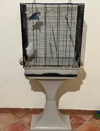 Coppia di inseparabili completi di gabbia