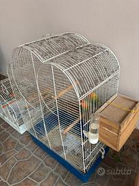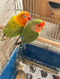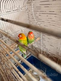 Coppia di inseparabile/inseparabile fisher. Compresa di gabbia(nido,beverino,mangiatoia,posatoi)