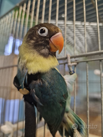 Allevamento amatoriale I Piccoli delle 3 Piume, a Broni Pavia, causa esubero, cede coppia agapornis personata mutati ex allevati a mano, da riproduzione, anello inamovibile e certificato di cessione Cites.