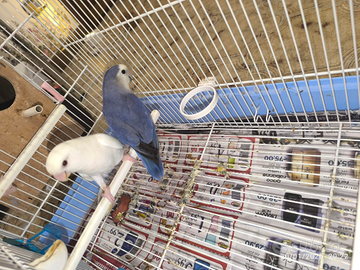 Stupenda coppia di inseparabili riproduttiva femmina albino maschio viola circa 18 mesi lì tolgo x mancanza di tempo da dedicare compreso di gabbia da cova 60cm e il nido il prezzo non è trattabile e non accetto scambi grazie
