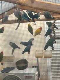 accetto scambi con inseparabili pezzati sia serie verde che serie blu, malva, albini o lutini