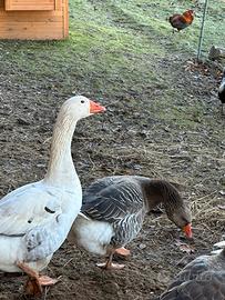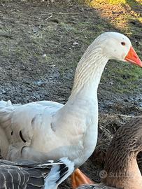 Vendo coppia di Oche, maschio bianco pezzato femmina simil Tolosa industriale.