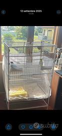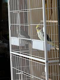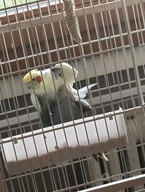 1 maschio (giallo) e 1 femmina (grigia) Coppia in amore Riproduttiva Prezzo coppia 60 euro Tenuti sempre bene e sempre fatti volare Con gabbia bianca che vedete in foto 100 euro