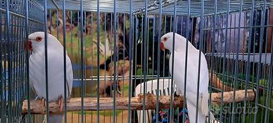 Disponibile coppia di parrocchetti dal collare albina non consanguinei, sessati e anellati. Ottima taglia. Maschio 2024 portatore di albino e blu. Femmina 2025 portatrice di "palid" e blu. Prezzo 300€