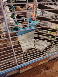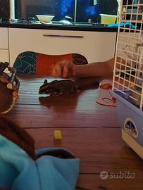 Vendo coppia di petauri dello zucchero + gabbia completa - 250 € tutto compreso Vendo 2 petauri dello zucchero (maschio e femmina) di circa 5-6 mesi, abituati a stare insieme. ? Non vendo separatamente, perché i petauri sono animali sociali e da soli soffrono molto fino a stare male. Sono abituati al contatto con le persone, vengono in mano senza problemi, sono molto dolci, simpatici e coccoloni, soprattutto il maschio che è molto affettuoso, ma anche la femmina si fa prendere tranquillamente. Si possono tirare fuori dalla gabbia senza difficoltà e sono abituati alla presenza in casa. Se non si desidera la riproduzione, il maschio può essere castrato senza problemi da un veterinario esperto in animali esotici. Li vendo purtroppo per mancanza di tempo per seguirli come meritano. ? Alimentazione Mangiano frutta e verdura fresca + papetta specifica per petauri. Insieme cedo anche: mezzo sacco di papetta altri 2 barattolini di papetta 1 barattolino di calcio (fondamentale per la loro salute) ? Gabbia completa inclusa Compresa nel prezzo: gabbia praticamente nuova abbeveratoio per l'acqua 2 amache dove dormono noce di cocco per dormire (versione estiva, più fresca) accessori vari ? Prezzo 200 € la coppia 100 € gabbia completa con accessori ? Totale 250 € tutto in blocco, non separo Solo persone serie e realmente interessate.