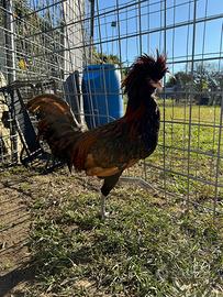 Vendo splendida coppia di galli ornamentali ciuffati, giovani e in ottima salute. Colorazione molto vivace e piumaggio lucido, cresciuti all'aperto e abituati al contatto umano. Ideali sia per esposizione che per abbellire il pollaio con una razza particolare e rara da trovare.
