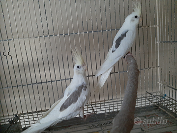 disponibile bellissima coppia di pappagalli calopsite mutazione turchese maschio faccia crema pezzato estremo di 7 mesi femmina faccia crema pezzata estrema cannella di 2 anni il prezzo è riferito a singolo soggetto