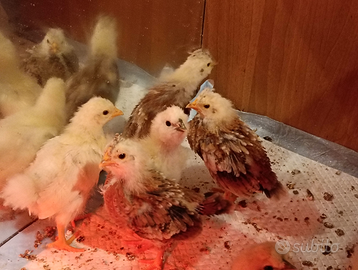 Disponibili pulcini e pulcinotti misto razze ornamentali nane. Galline e galletti 6/7 mesi. Vari colori, misto mugellese e nane predisposte alla cova. Alcune ciuffate altre con piumaggi particolari e variopinti. Solo per appassionati ed amanti degli animali e per chi necessita di galline piccole per bellezza o per cova. O per mangiarsi piccole buonissime uova mini!! Per tutte le informazioni scrivete su WhatsApp al 3290454835 Galline ornamentali Galline piccole Cova Pollaio Pulcini Chioccia