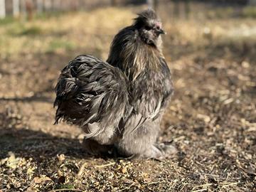 Vendo 2 galline e 1 gallo moroseta, taglia piccola, di circa 8 mesi. Gallo blu con barba, gallina cioccolato con barba e gallina perniciata oro senza barba. Euro 80. Possibile consegna in nord Italia.