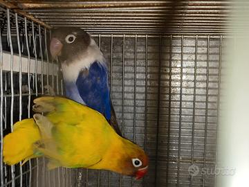 Cedesi coppia di inseparabile mascherato pezzato verde portatore di blu x cobalto viola entrambi sessati molecolarmente tramite DNA della piuma con relativo certificato di sessaggio e documentazione cites