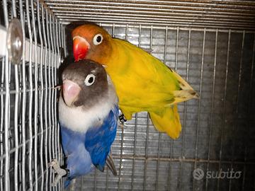 Cedesi coppia di inseparabile mascherato pezzato verde portatore di blu x cobalto viola entrambi sessati molecolarmente tramite DNA della piuma con relativo certificato di sessaggio e documentazione cites