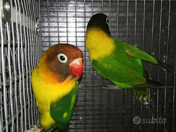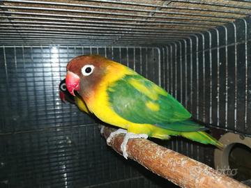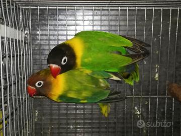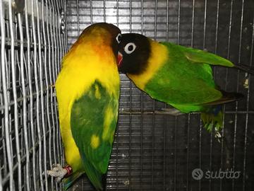 Cedesi coppia di inseparabile mascherato pezzato verde portatore di blu x verde entrambi sessati molecolarmente tramite DNA della piuma con relativo certificato di sessaggio e documentazione cites