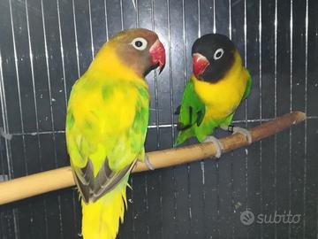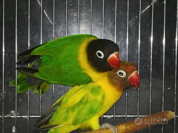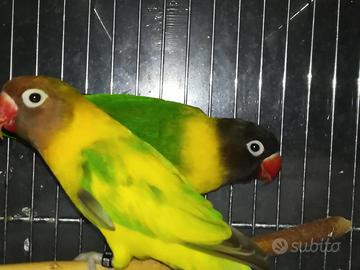 Cedesi coppia di inseparabile mascherato pezzato verde portatore di blu x verde entrambi sessati molecolarmente tramite DNA della piuma con relativo certificato di sessaggio e documentazione cites