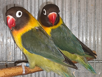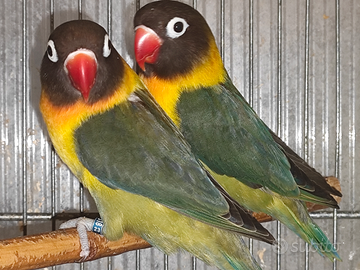 Cedesi coppia riproduttiva di inseparabile mascherato verde oliva x verde oliva entrambi portatori di blu sessati molecolarmente tramite DNA della piuma con relativo certificato di sessaggio e documentazione cites mi