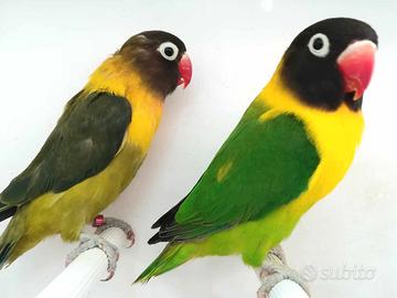 Cedesi coppia di inseparabile mascherato verde x verde oliva portatrice di blu entrambi sessati molecolarmente tramite DNA della piuma con relativo certificato di sessaggio e documentazione cites