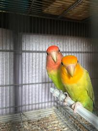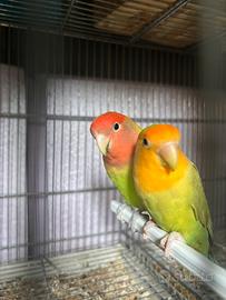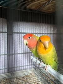 vendo stupenda coppia di inseparabili riproduttiva, maschio ancestrale per femmina faccia arancio, entrambi anno 2025, vendo per dismissione allevamento