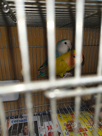 Coppia inseparabili compresa di gabbia e nido con 2 uova appena fatte già riprodotta