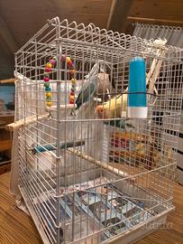 Coppia inseparabili con gabbia