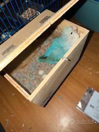 Vendo coppia di inseparabili con gabbia nido e accessori