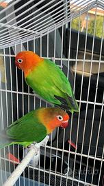 Coppia inseparabili Fisher affiatata e riproduttrice Descrizione: Disponibile coppia di inseparabili Fisher affiatata e già riproduttiva, con esperienze di nidiate. Maschio opalino Fisher, femmina ancestrale. Soggetti sani e ben tenuti. Documenti in regola. Cessione per cambio progetto. No perditempo. Non si dividono