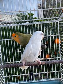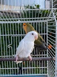 Cedo coppia di inseparabili roseicollins formata da femmina albina e maschio verde oliva faccia arancio , piumaggio perfetto! Per qualsiasi info contattatemi