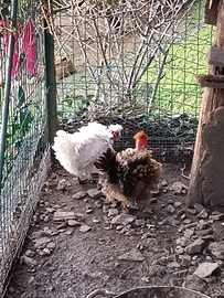 Coppia nane da cova frizzle, gallo collo intero, gallinella collo nudo, entrambe frizzle