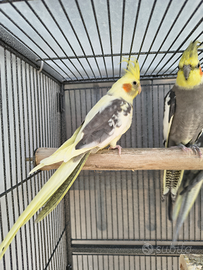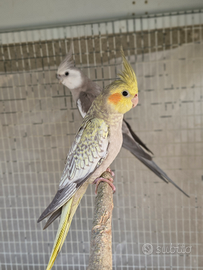 Disponibile giovane coppia pappagalli calopsite allevati dai genitori, no pet Maschio pezzato x femmina perlata cannella Ottima taglia e colori Prezzo 60 #calopsitta inseparabili parrocchetto monaco dal collare conuro amazzone cacatua canarino cocorita roseicollins pappagallino uccellino voliera gabbia