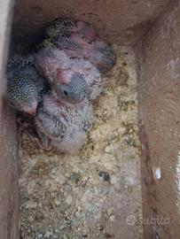 Vendo coppia di pappagalli cocorite di quasi due anni con 5 figli. I figli sono già pronti per essere allevati a mano. Prezzo € 65 non trattabile