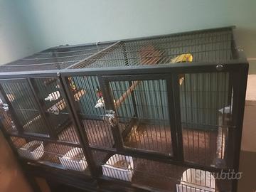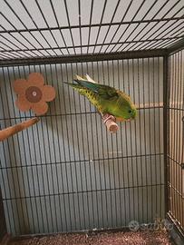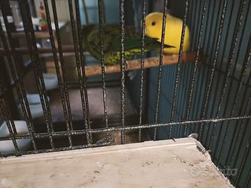 Coppia di Parrocchetti barrati femmina lutino e maschio verde. Un anno e mezzo di età. Compresa voliera. Cities in regola.