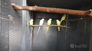 Disponibile coppia di parrocchetti dal collare del 2025,sessati ed anellati. Maschio verde ancestrale portatore di lutino ×femmina gialla.non effettuo spedizioni solo ritiro a mano.
