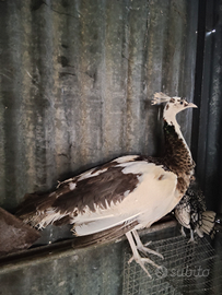 Disponibile coppia di pavoni , femmina arlecchino ed il maschio ancestrale portatore di arlecchino.prezzo riferito la coppia , posso consegnare in tutta la Sicilia