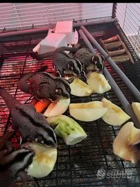 Vendo coppia baby petauri dello zucchero Non li vendo singolarmente poiché soffrono la solitudine. Vendo esclusivamente ad amanti degli animali e prima di venderli bisogna sapere che: 1 sono animali notturni 2 hanno bisogno di una (voliera) gabbia a doppio fondo abbastanza grande 3 non sono adatti ai bambini se volete un animale da compagnia prendete un cane 4 mangiano sopratutto: mele carote cetrioli. Da aggiungere il loro cibo "petaurus food" e le tarme della farina vive ( poi vi dico dove comprare queste ultime cose) Se volete altre info contattatemi, li vendo solo perché ne ho già tanti.