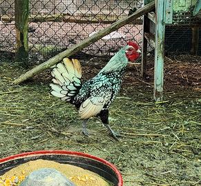 Cedo la coppia gallo-gallina razza sebright in foto a 40 euro. Possibilità del solo galletto a 15 euro (non cedo la gallina da sola)