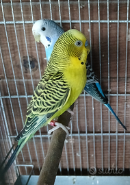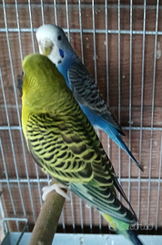 Cedo coppia riproduttiva di Cocorite. Il maschio è un Verde Clear Body portatore di Ali Nere e Blu, la femmina è una Blu. Per ulteriori informazioni scrivetemi su WhatsApp al 3475846023.