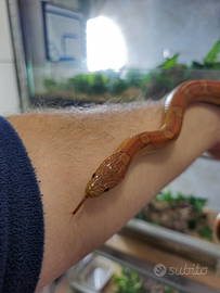 Cedo Coppia già riproduttiva di Pantherophis Guttatus (Serpente del grano, ex. Elaphe Guttata.), prima riproduzione avvenuta l'anno scorso a Marzo, con avvenuta deposizione di 24 Uova, con buona percentuale di schiusa, Il Maschio è Amelanistic Het Ultramel mentre la Femmina è Normal Het Ultramel e Amelanistic hanno rispettivamente 4 e 5 anni di età, sono entrambi molto docili apparte il maschio un pò più fuggiasco mangiano tranquillamente decongelato e non rifiuteranno mai un pasto.