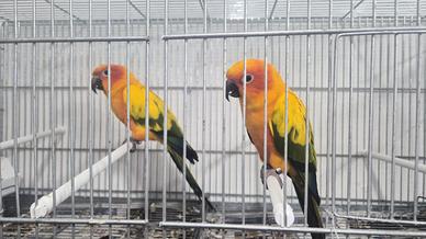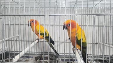 Vendo bellissima coppia di conuro del sole riproduttrice di quasi 4 anni ex allevati a mano pronti per la prossima riproduzione con anello cites e foglio di sessaggio vendo a 550 euro lasciare il numero di telefono solo se siete realmente interessati