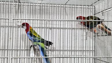 Vendo bellissima coppia di rossella da riproduzione non allevata a mano di 1 anno e mezzo vendo completo di gabbia zincata da 90 × 40 al prezzo di 200 euro per chi fosse realmente interessato mi può lasciare il proprio numero di telefono