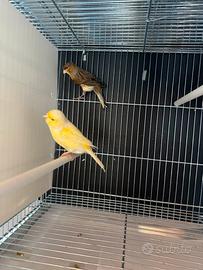 Vendo coppia riproduttrice, M arlecchino portoghese x F gialla brinata. Ottimo canto e buona struttura. Vendo per esubero, anche separatamente.