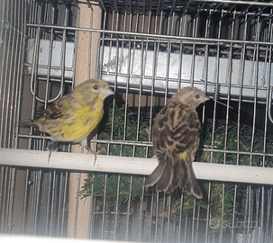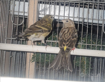 Vendo coppia di verzellini anellati 2025 allevati a mano a 100? valuto scambi con un cardellino mayor, maschio o femmina è indifferente.