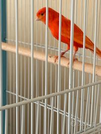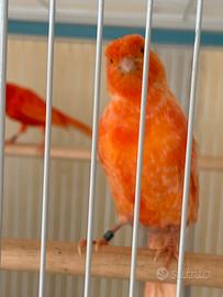 Vendo 2 coppie di canarini rossi + gialli. Regalo mangime e accessori per cova
