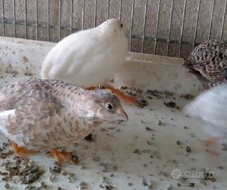 Ciao, Abbiamo disponibili alcune coppie di quaglie cinesi adulte, perfettamente impiumate e di diverse mutazioni, pronte alla riproduzione. Tutti soggetti nati nel 2025 Vendiamo coppie o singoli maschi, non femmine singole. Ciao!